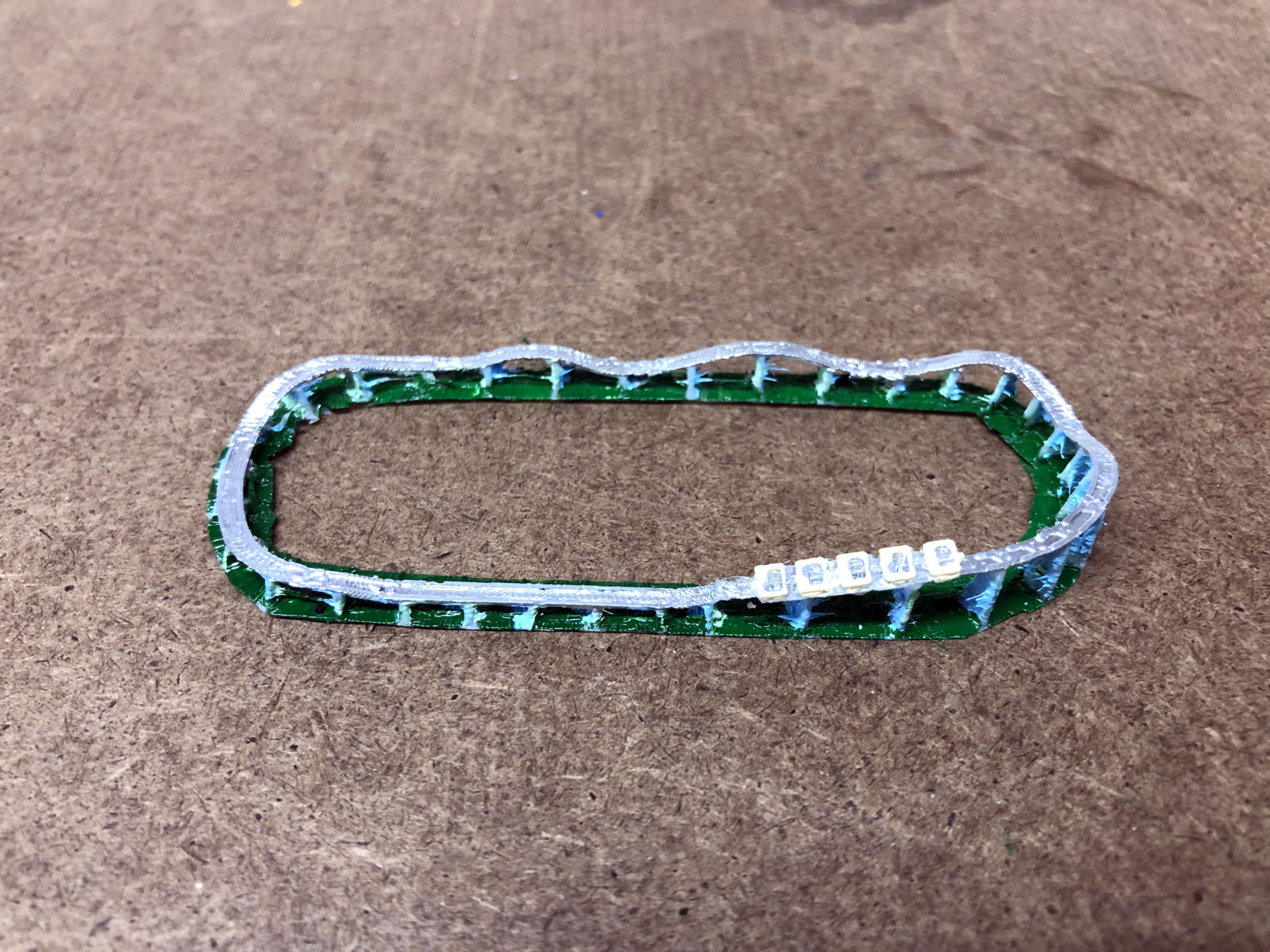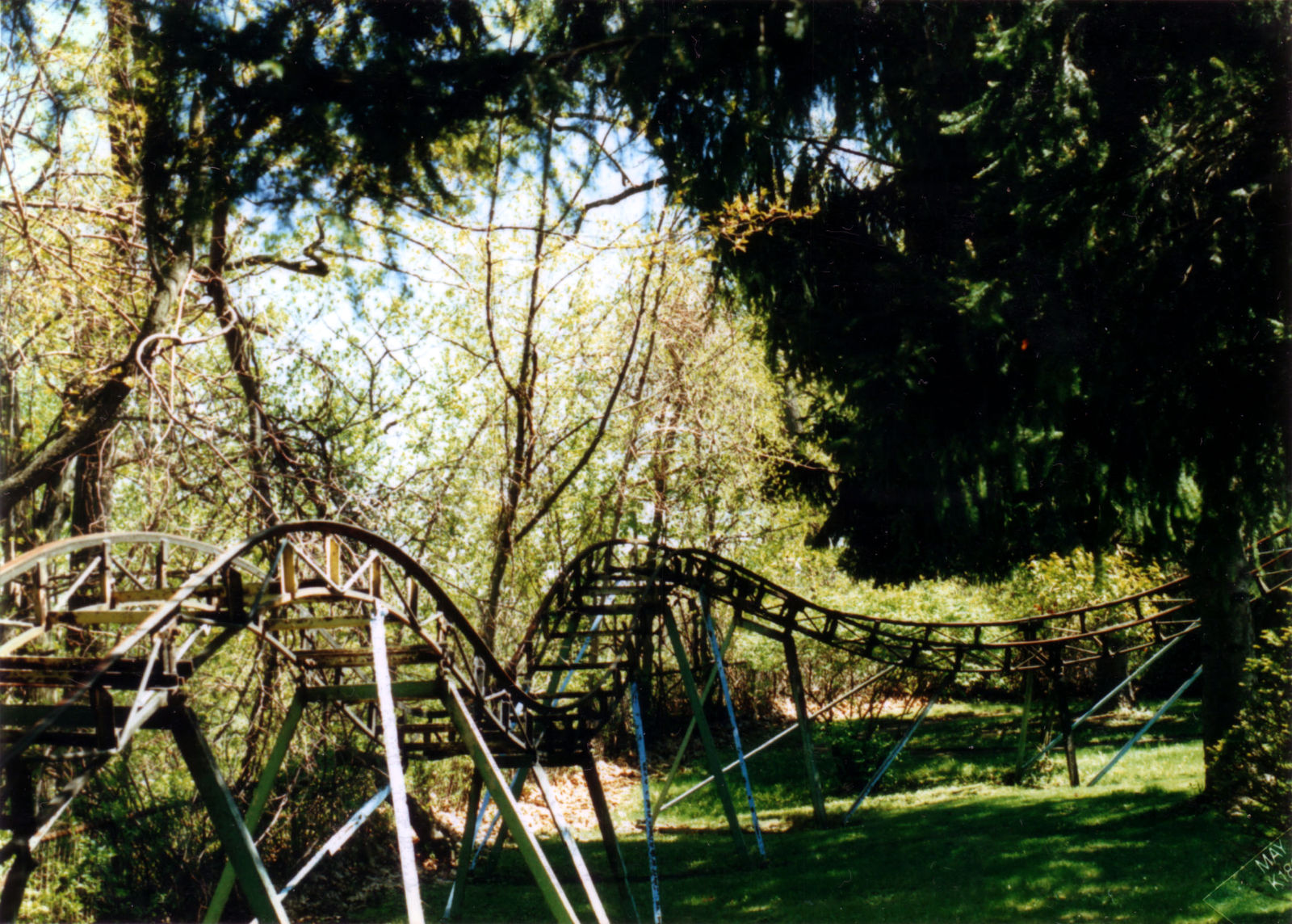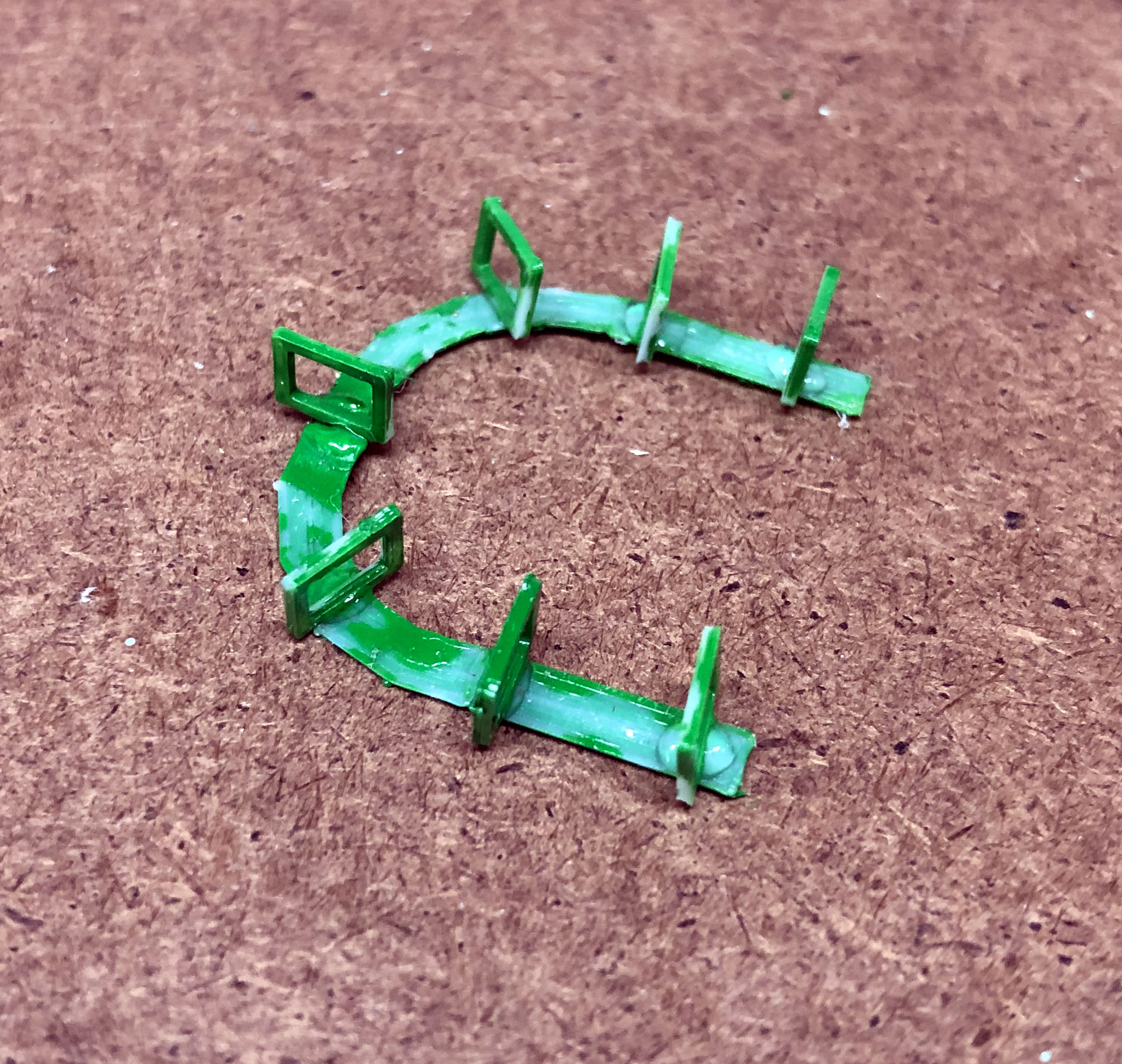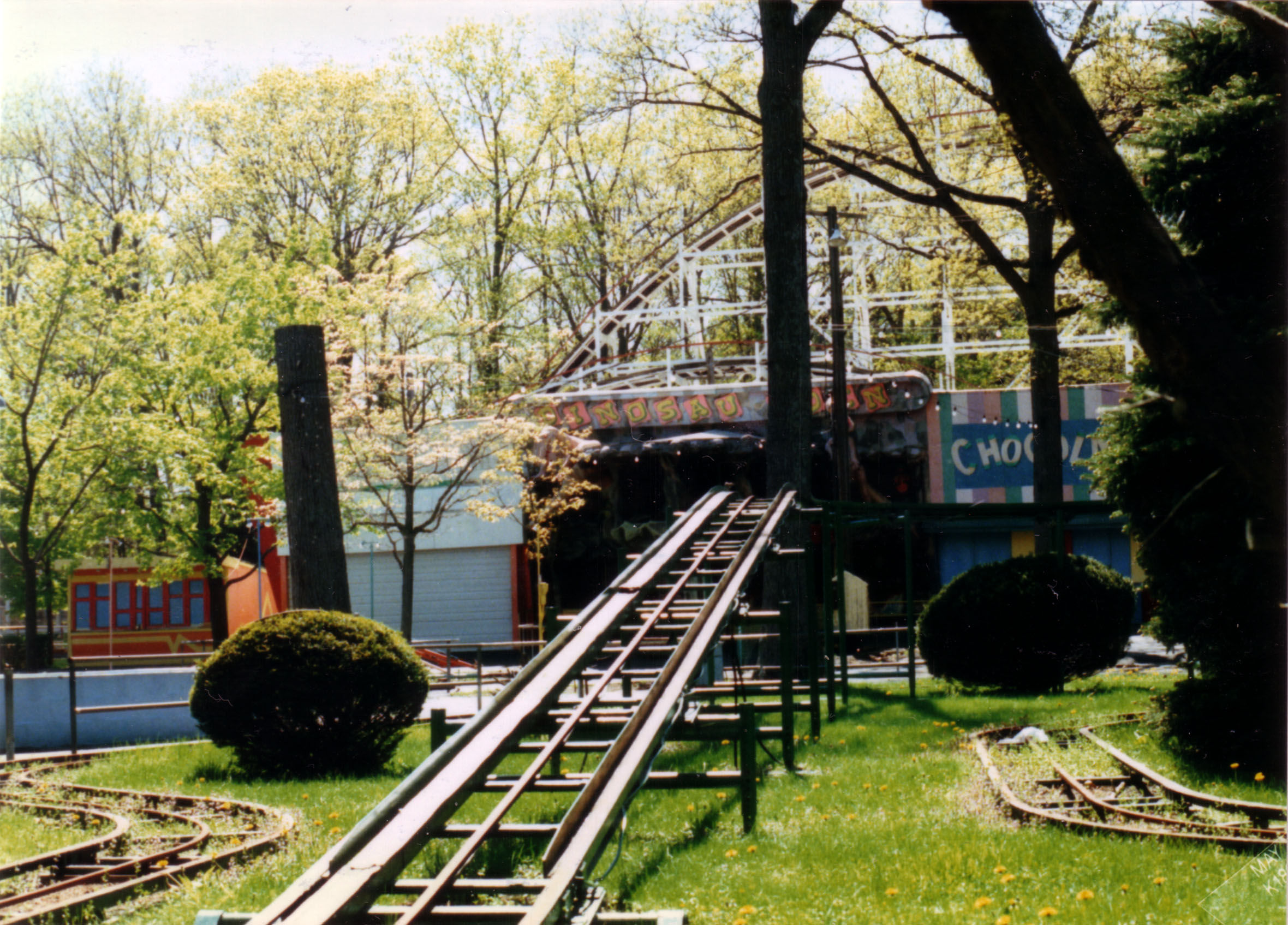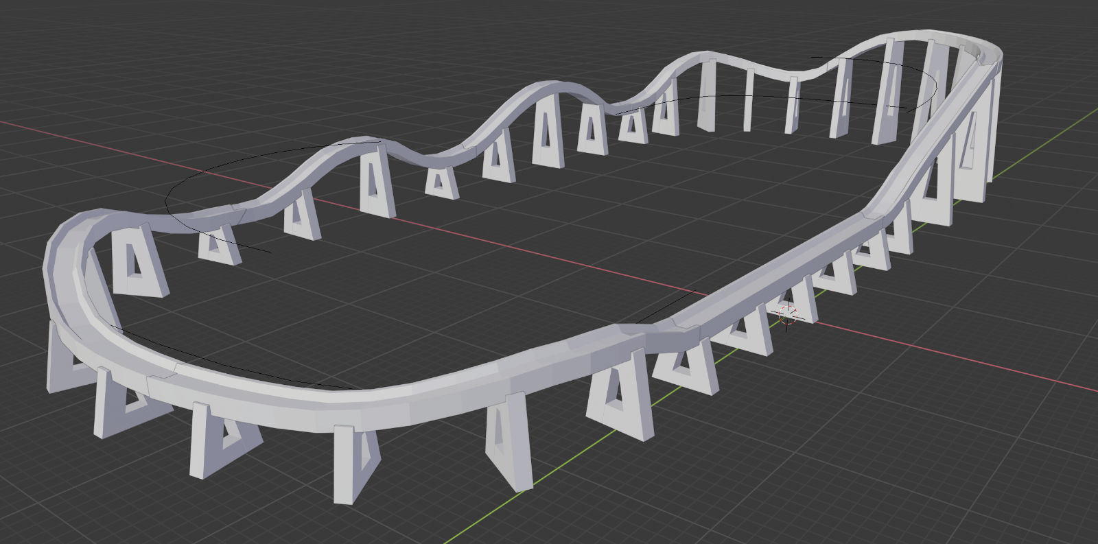 I started with a sketch that matched the footprint of the model. The pattern of the track was clever, a sort of curvy double oval that gave the sense of a much longer trip than it was. Like the Cutie Caddy and the kiddie coaster, part of the ride (the curve leading back to the station) was perched on the edge of the cliff overlooking the parking lot and as a kid it was always a thrill riding along that edge. The first part that I modeled was the train. The actual train car had a lot of curvy detail in it. But I left all that out of my model since it would never print. The train took me just a few hours to construct. I started the track with the straight piece that formed the station. I made the three rails out of elongated cubes and placed them on a flat surface so that they'd print. To make the curves, I used a duplicate of the straight piece but shortened it and then cut the sides at a 12-degree angle. That allowed me to fit the small sections together into a gentle curve. When I got to the inclines, I tilted the track up so that I could size the length correctly. I added the curve and the downslope and then finished off with the curve back to the station. Then I created the trestles so that they fit under the raised track. Once that was completed, I took apart the raised sections and flattened out the entire layout. That was how I would print it. Once again, the tiny scale proved to be a challenge with several of the smaller trestle sections refusing to print. When I finally got a decent print, I painted the track and trestles green. Then I painted the trains as best I could. When that was dry, I glued the trestles onto the upper track which would make the whole thing easier to install. With that done, I turned my attention back to the kiddie coaster. Knowing how poorly small detail printed, I approached this design with a more brutal aesthetic. I wanted to make all the parts thick, even if it looked unrealistic on the screen, because I knew that would print correctly. The original structure was lattice-like, which would have been unprintable. So instead I made the track more like a flume trough. I stretched and subdivided a cube in Blender which allowed me to bend it in any direction. Then I simply duplicated that cube over and over, curving it as I needed to. In a short time I had a complete circuit, Next I created an A frame and duplicated that, sizing and rotating each one as needed, until all the supports were done. They didn't look anything like the actual rather dainty supports, but again I needed them to print. My first printing attempt wasn't very successful. The track itself was broken in places. There was a lot of stringing and the supports were fragmented. So I went back to the drawing board and beefed up the entire structure. It looked ridiculous on the computer, but it actually printed pretty well. Try as I might, I couldn't get the train to print. I redesigned it to make it a bit thicker and I also added a thick bar through it, front to back, allowing me to line them up in my slicer program and print them out as a single train. But the printer couldn't handle something that tiny and extruded tiny formless blobs. So I ordered a new .2 mm nozzle for my printer (half the size of the default nozzle). It arrived in a few days, and the result was dramatically better. It still didn't look much like a train, but there was finally some discernable detail. Painting the pieces was fairly simple. The original coaster had a yellow track structure with pastel green and blue supports. But most of the yellow had been spattered with grease. The most prominent track color was the silver of the rails, so that's what I went with for the top. I left the raft on the base and painted it dark green, so that it would be easier to affix to the Homasote. Then I painted the train and glued it to the lift hill, and the kiddie coaster was done. While I was at it, I made a larger version of the Puffing Billy and attached it to a wood base with fake grass and trees. I planned to give it to Jay Collins at some point. It wasn't until mid-August that I made it back to Heritage Park to install the two rides. I still needed to figure out how I was going to make the station for the kiddie coaster. And I needed to make the pavilion for the Whip. And then I needed to decide what I would tackle next. There's a slight addendum to this portion: I had been working on the station for the kiddie coaster. It was too small to build out of toothpicks and card stock, so I once again turned to the 3D printer. On my first attempt, the legs were too thin and broke off. So as I did for the coaster track, I beefed up the supports and it printed fine. I painted it and brought it to Heritage Park in September. When I arrived, there was an unpleasant surprise. Evidently an unsupervised child had gotten a hold of the model and had torn up a few trees and the Pizza roof. Obviously, I wasn't too happy about that. Charlie wasn't around. I showed his assistant the damage and she wasn't very happy about it either. They needed that plexiglass cover to prevent further damage. Anyway, I glued the kiddie coaster station into place. It was a bit too tall, but from most people's viewing angle it wouldn't matter. Then I had the assistant help me place the wooden cover (which had been stored off to the side) back onto the model. It would remain safely out of view until they were able to properly protect it. |